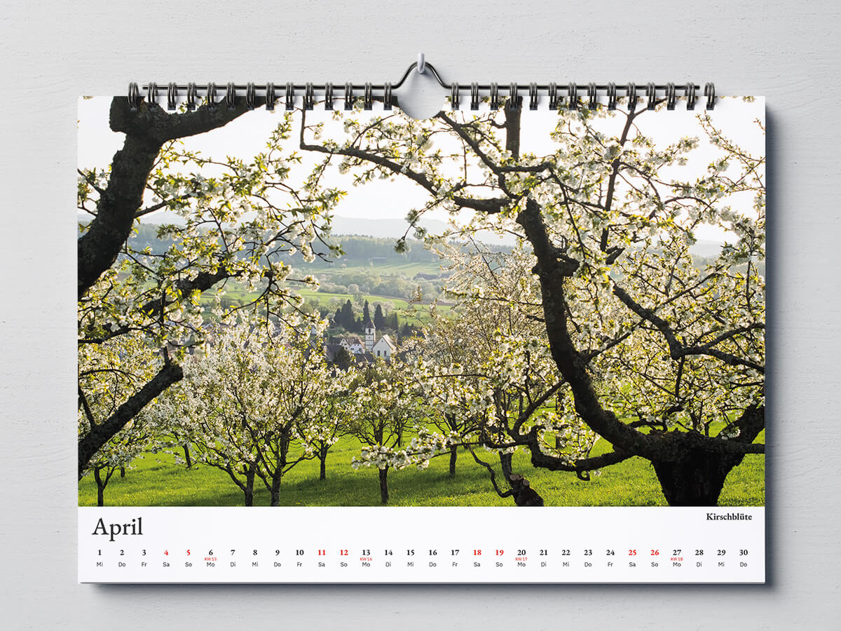 Den Kalender habe ich bei „Wir machen Druck“ drucken lassen mit einer Spiralbindung und PVC-Foliendeckblatt zum Schutz.