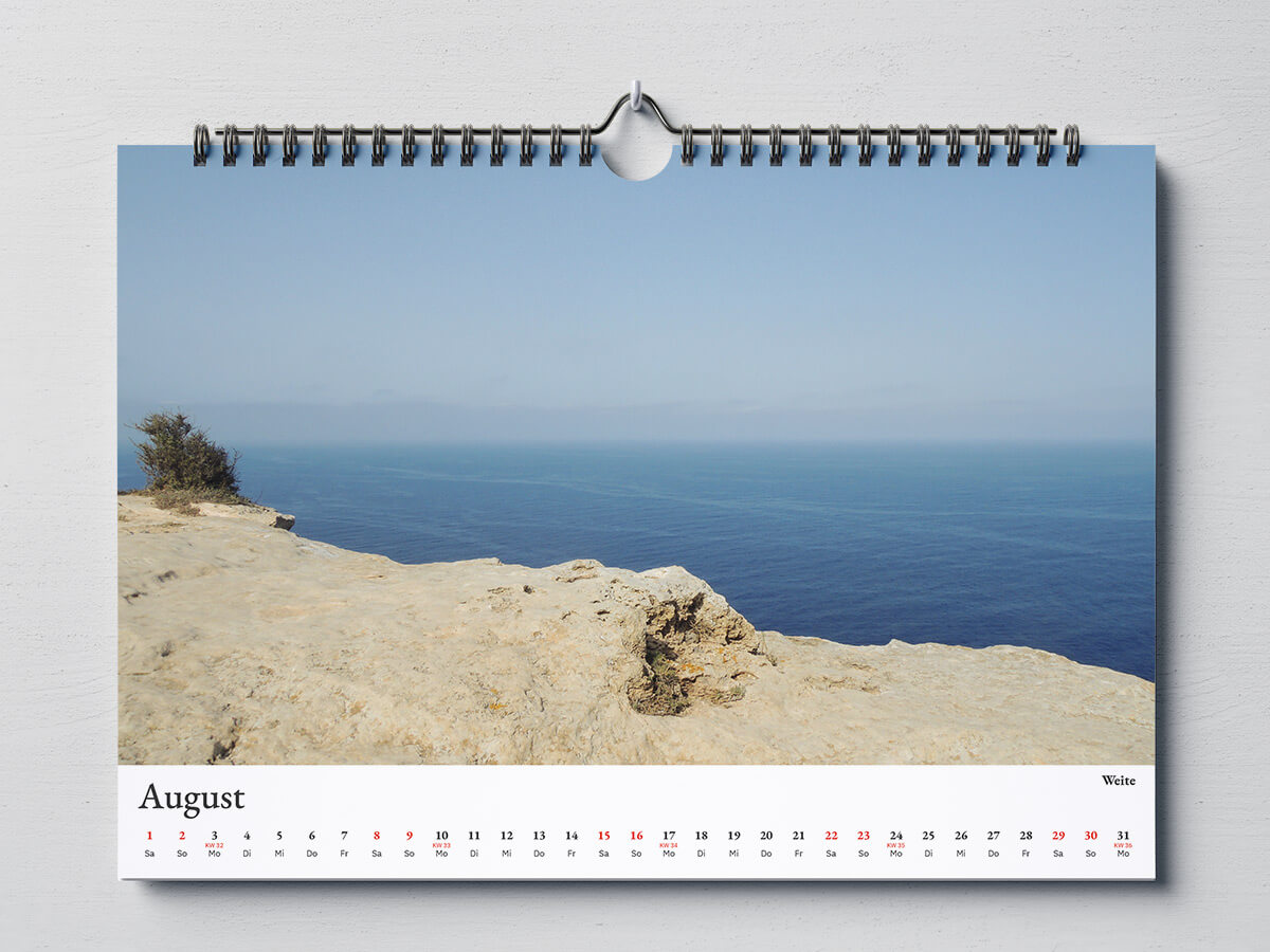 Den Kalender habe ich bei „Wir machen Druck“ drucken lassen mit einer Spiralbindung und PVC-Foliendeckblatt zum Schutz.