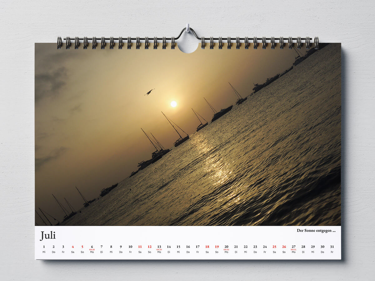 Den Kalender habe ich bei „Wir machen Druck“ drucken lassen mit einer Spiralbindung und PVC-Foliendeckblatt zum Schutz.