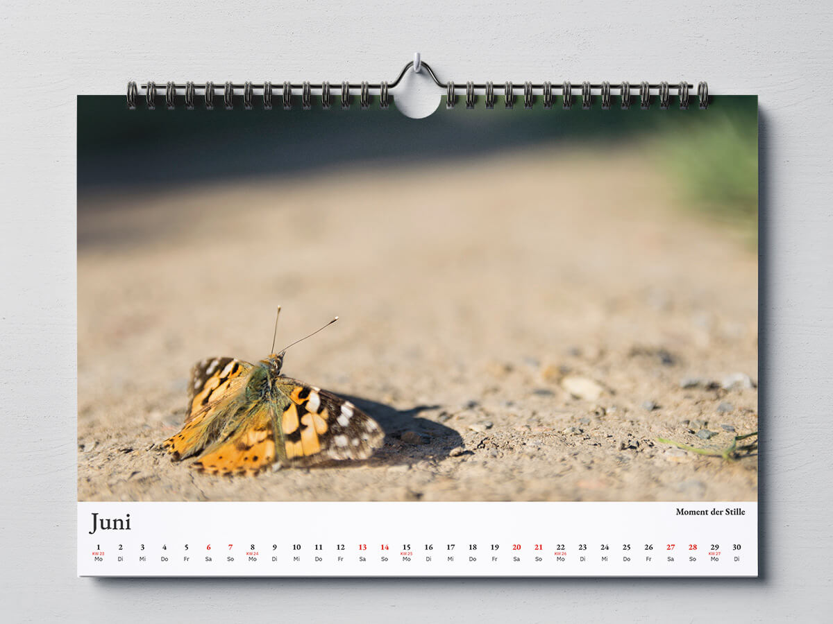 Den Kalender habe ich bei „Wir machen Druck“ drucken lassen mit einer Spiralbindung und PVC-Foliendeckblatt zum Schutz.