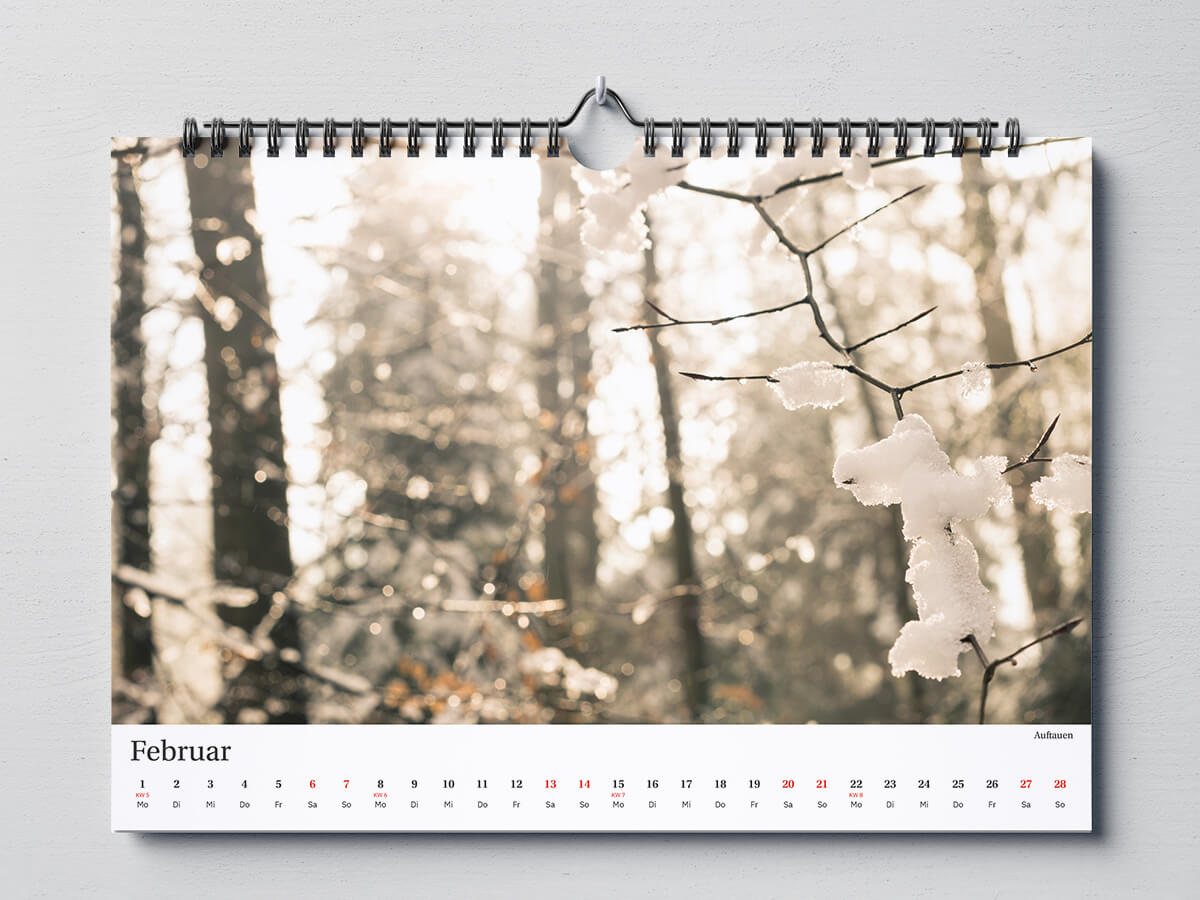 Den Kalender habe ich bei „Wir machen Druck“ drucken lassen mit einer Spiralbindung und PVC-Foliendeckblatt zum Schutz.