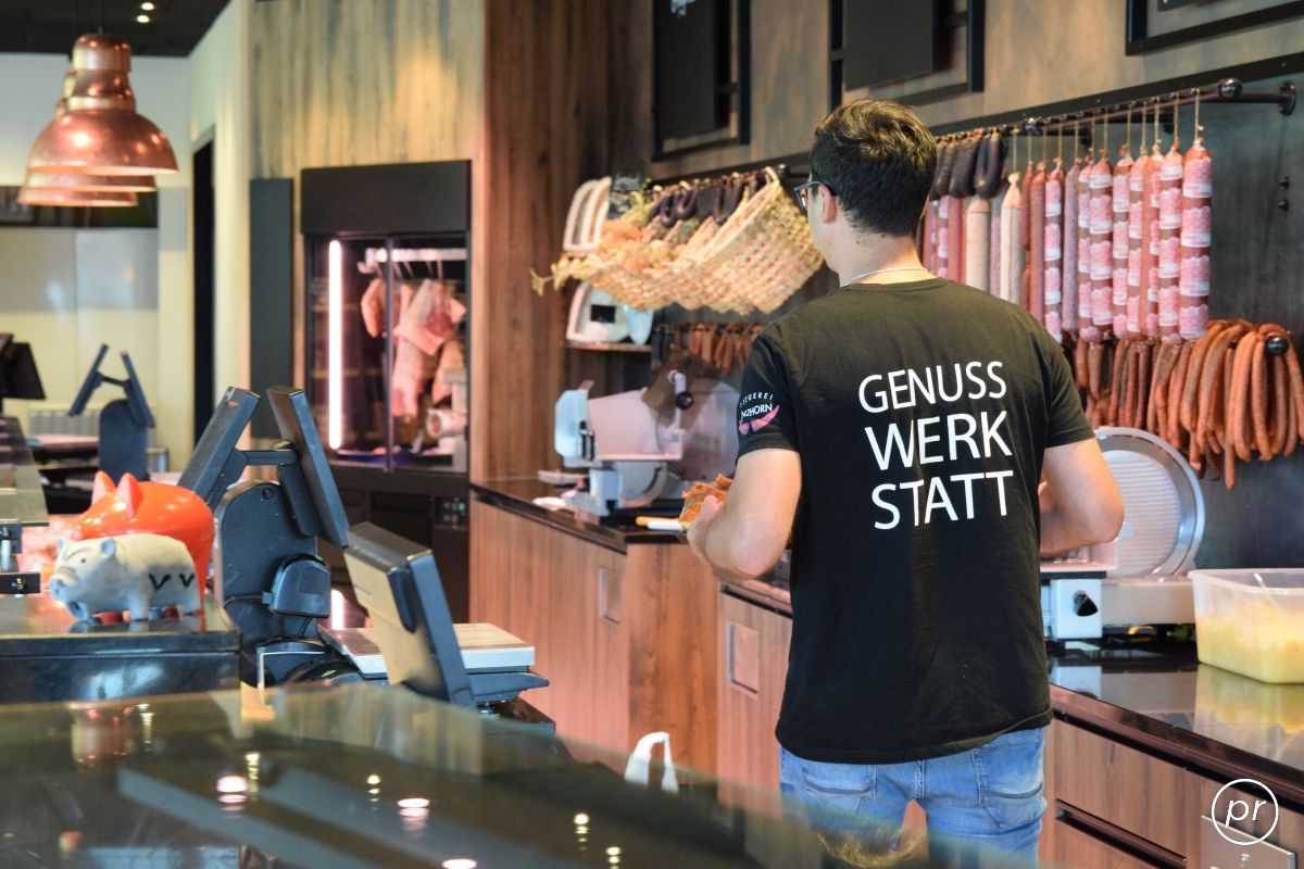 Die Metzgerei Ganzhorn ist im Juni dieses Jahres von ihrer ursprünglichen Verkaufsstelle in der Hindenburgstraße in modern gestaltete, großzügige Räumlichkeiten in der Karl-Kircher-Straße umgezogen. Zusätzlich zum Wurst- und Fleischverkauf bietet die Genusswerkstatt ein gemütliches Bistro mit einer reichhaltigen Auswahl an Essen und Getränken. Auf der Außenterrasse können Besucherinnen und Besucher zudem den Blick auf Gräfenhausen genießen. In einer Fotosession habe ich von den stilvoll eingerichteten Räumlichkeiten Aufnahmen gemacht.