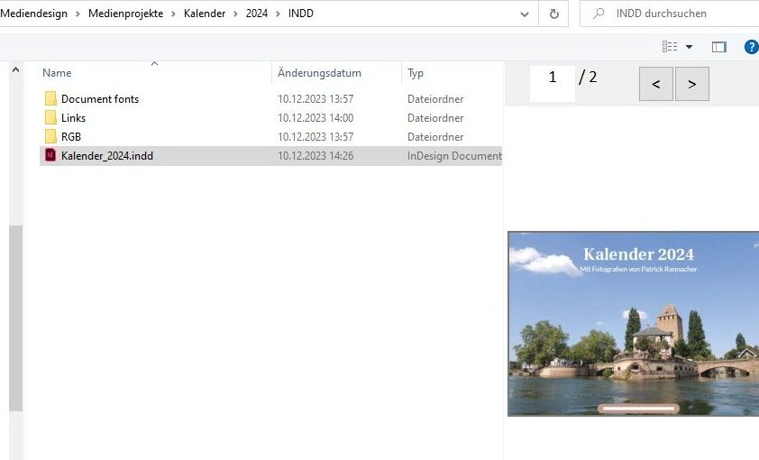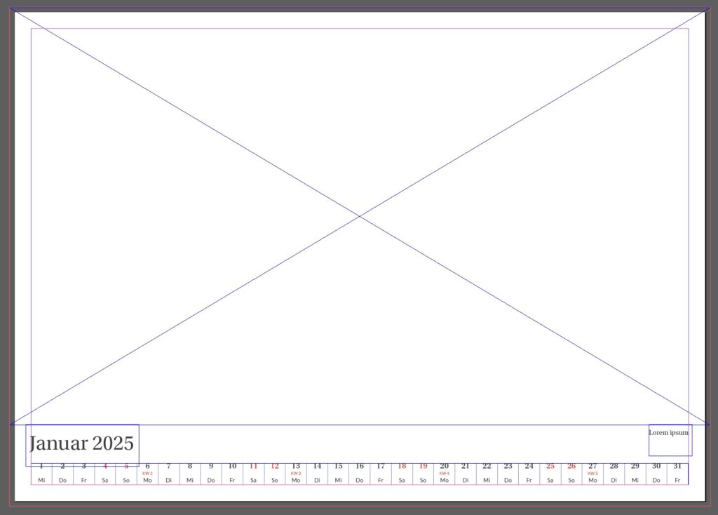 Ich erstelle die Kalendervorlage bereits etwa 1 Jahr im Voraus. D. h. den Kalender für 2025 bereite ich jetzt vor. Das hat den Vorteil, dass ich über das Jahr verteilt bereits Bilder einfügen kann und den Kalender so sukzessive erstellen kann. Dadurch muss ich nicht zum Jahresende alle Bilder heraussuchen, sondern kann dann den Feinschliff machen.